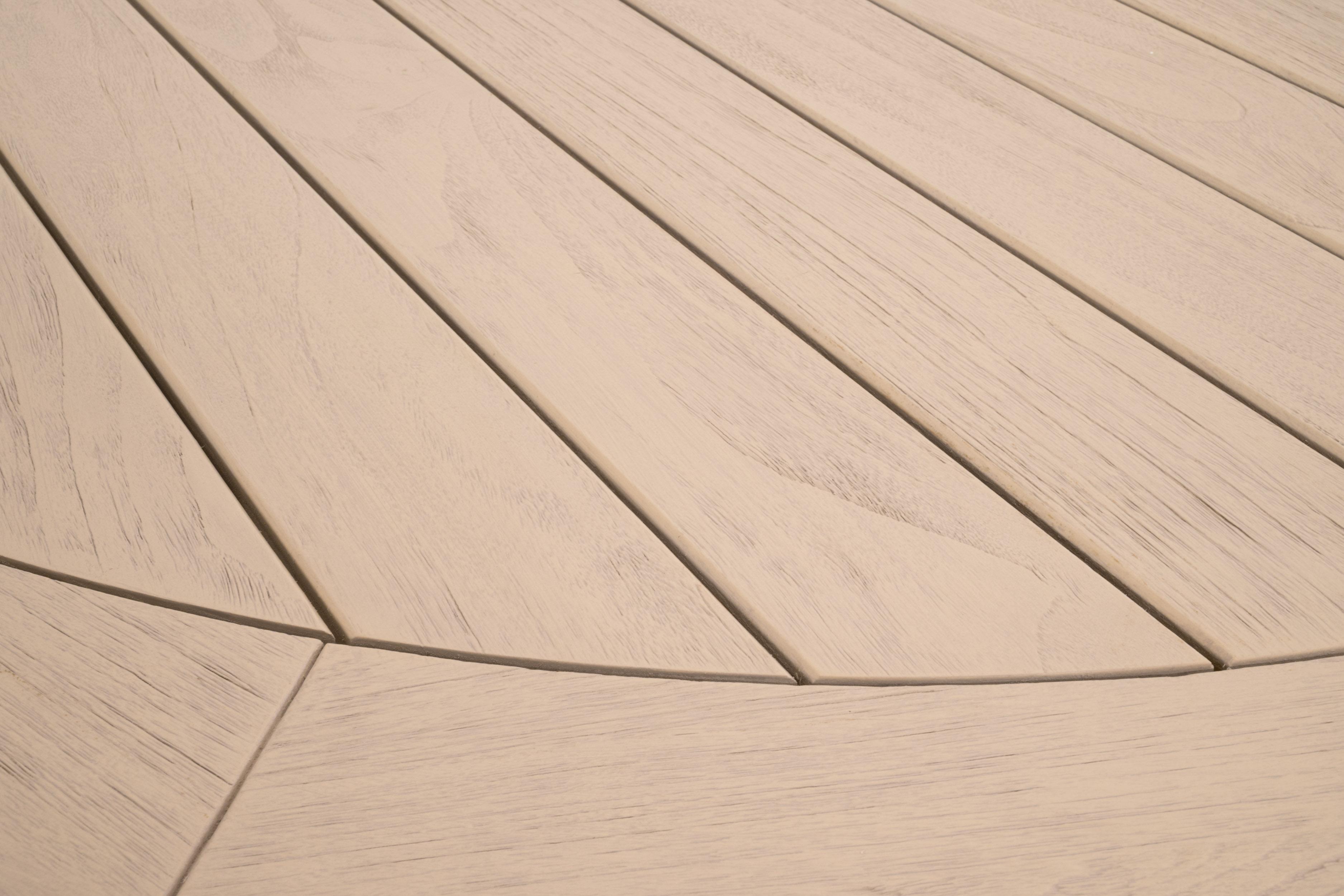 Woven Collection's Washed Ever Teak is a multi-step hand-applied finish. A wire brush is first used to distress the wood by hand before applying a polyurethane finish that is designed to resist naturally occurring wood finish changes from the outdoor elements. Due to the hand-applied nature of the finish, uneven application or uneven wire brushing is possible. Washed Ever Teak finish may fade and wear over time, and as the finish deteriorates, the natural teak underneath will become visible and gradually turn grey. The rate of this weathering will vary based on factors such as climate, exposure, and maintenance levels. To protect your furniture from the elements and minimize aging, we strongly recommend using outdoor covers.