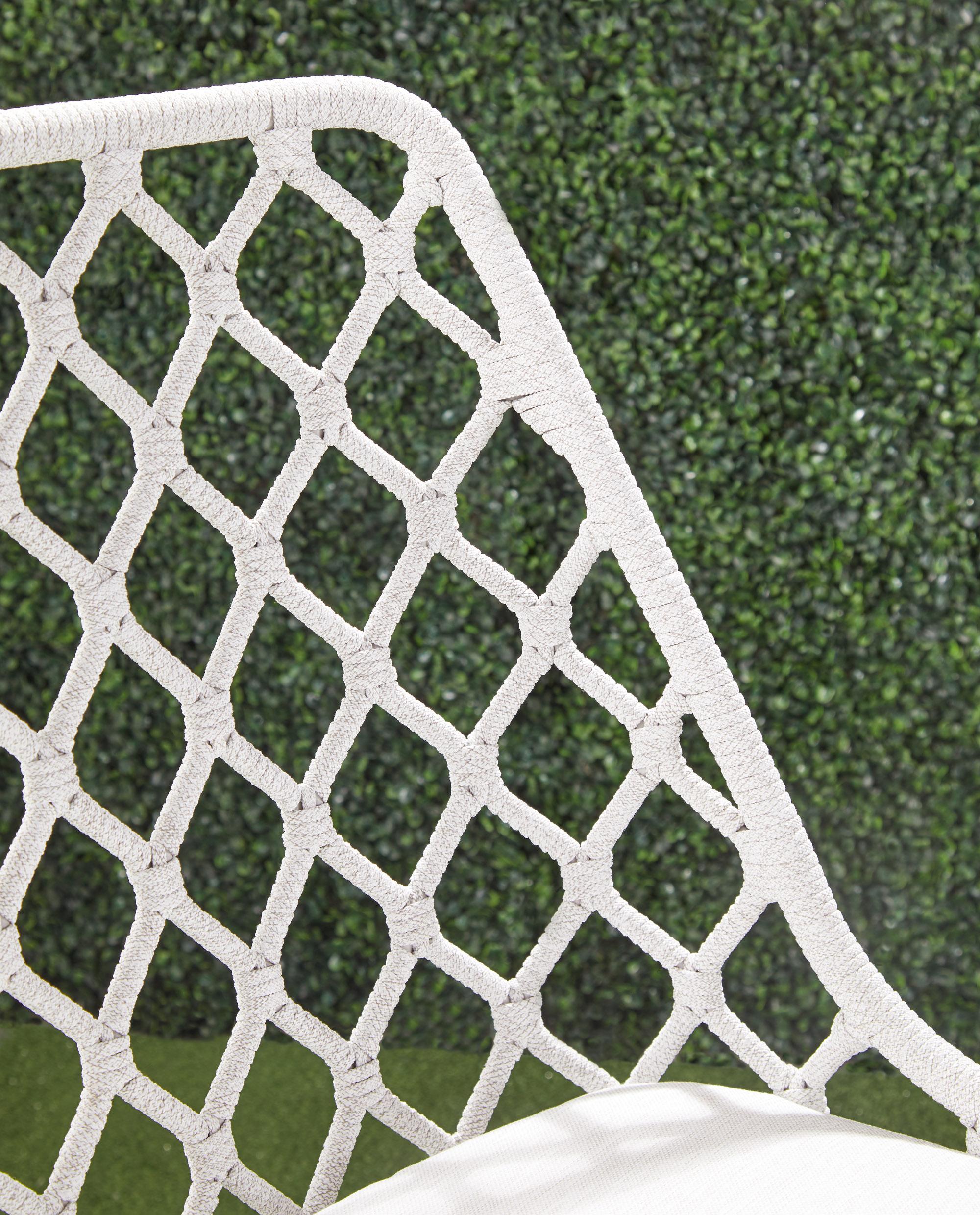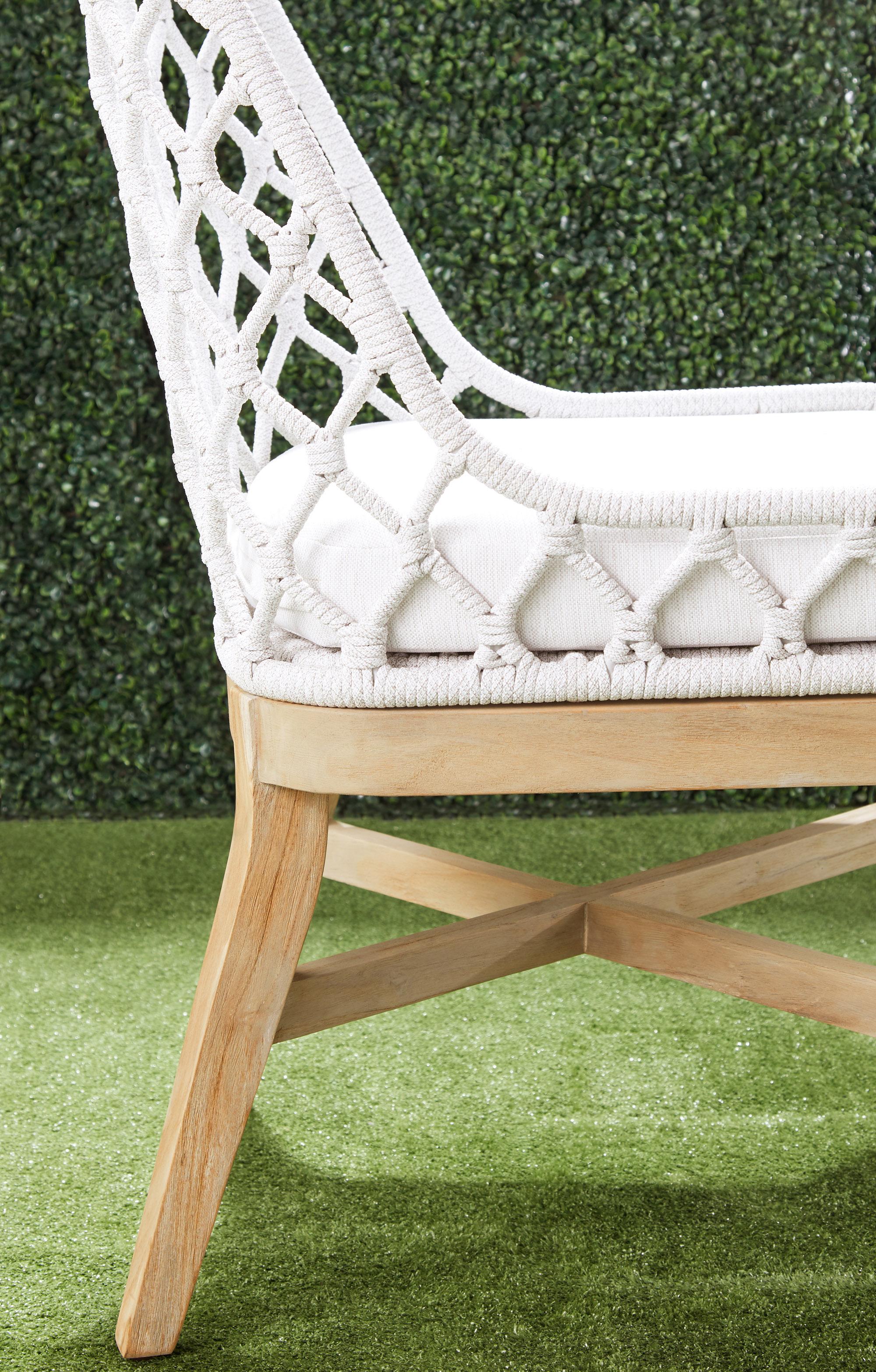 - Materials: Solid Teak Wood, Aluminum, Polyolefin Rope, 100% Olefin Fabric, Foam