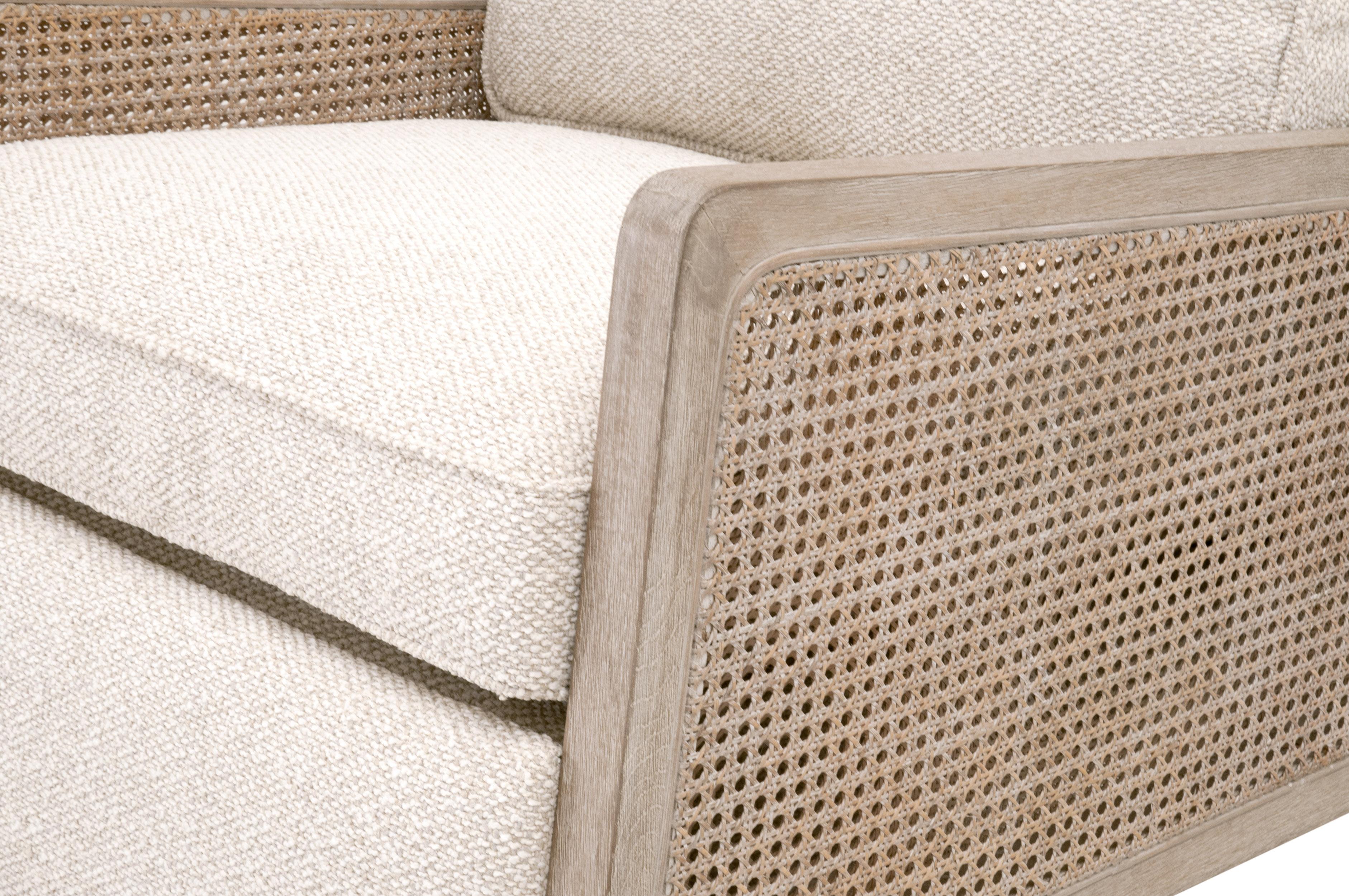 - Materials: Solid Oak Wood, Rattan, 100% Polyester Fabric, Foam, Down Blend