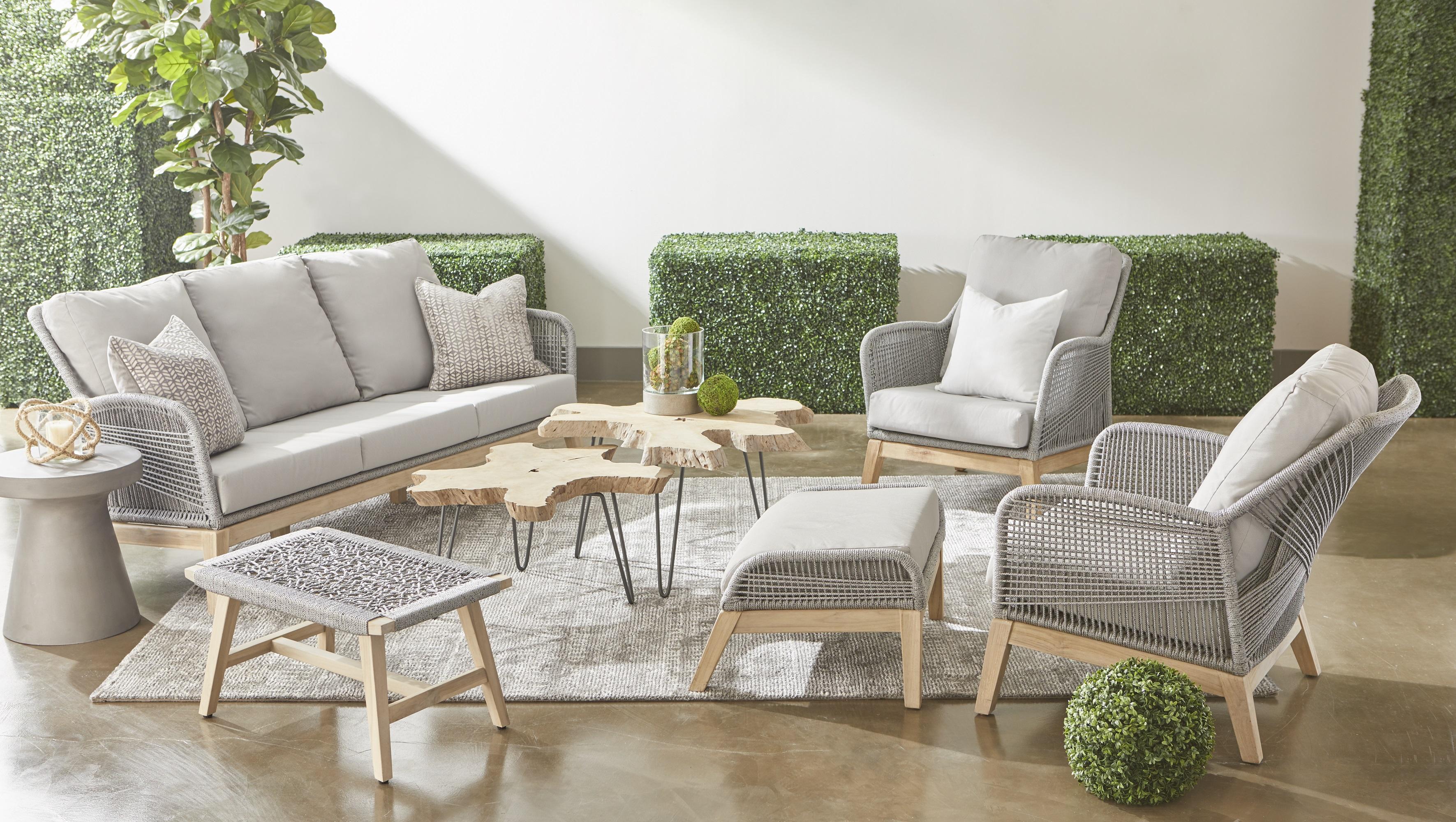 - Materials: Solid Teak Wood, Aluminum, Polypropylene Rope, 100% Olefin Fabric, Foam