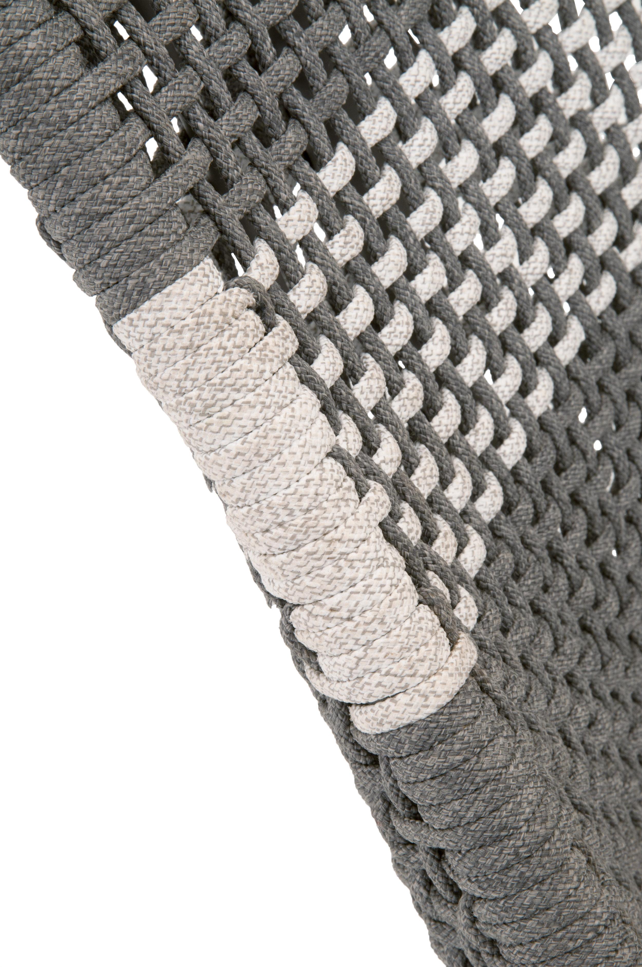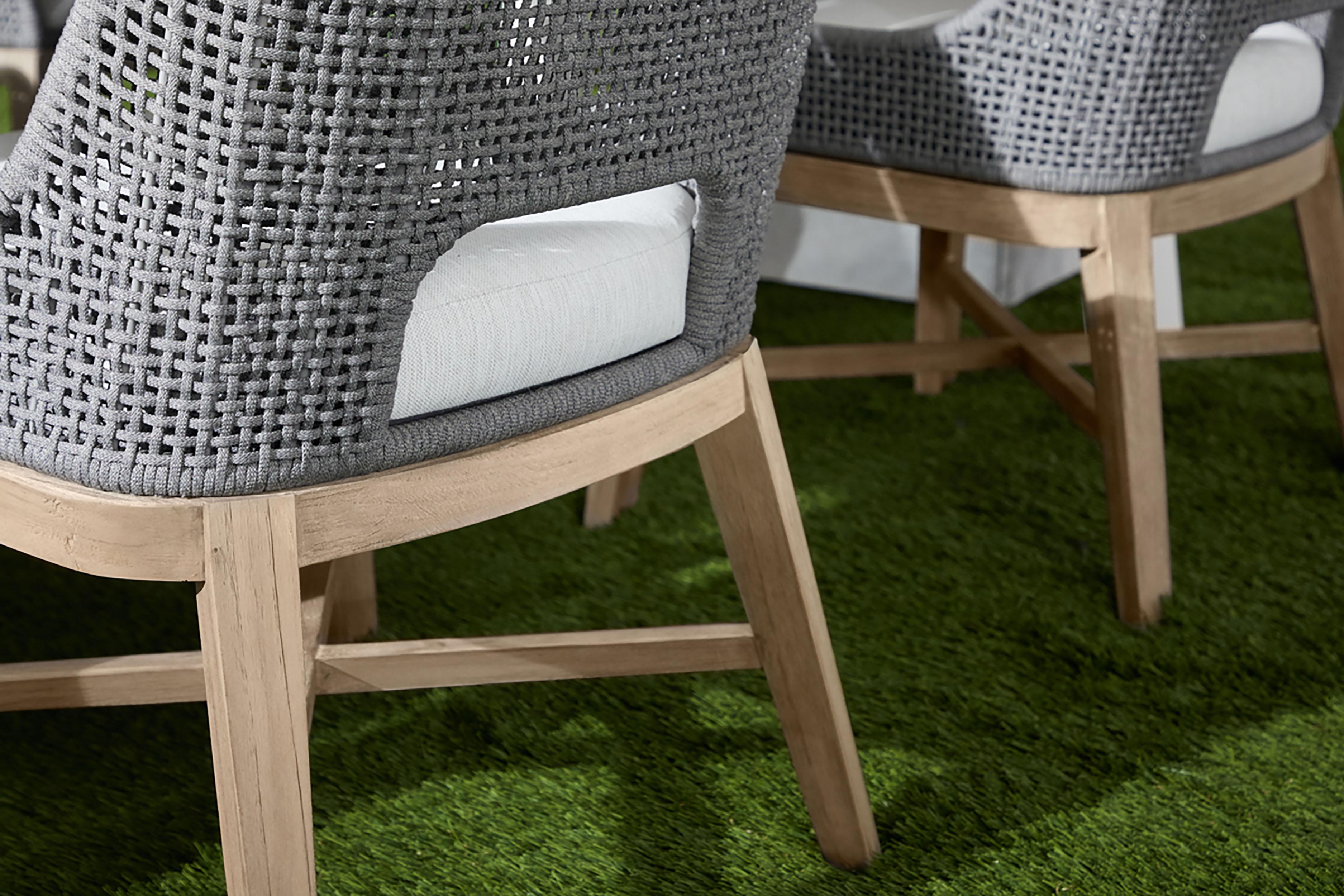 - Materials: Solid Teak Wood, Powder Coated Steel, Polyolefin Rope, 100% Olefin Fabric, Foam